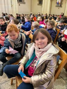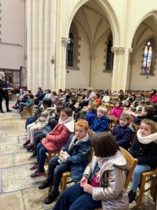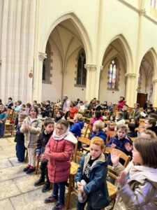 Cette année, nous avons fait le choix de célébrer l’Epiphanie. Les élèves se sont donc rendus à l’église ce vendredi 9 janvier afin de fêter l’arrivée des rois mages. Tout au long de la célébration, les élèves ont participé de différentes manières : chants, lecture et distribution d’étoiles fabriquées en amont. Pour terminer, chaque classe est allée admirer la crèche.