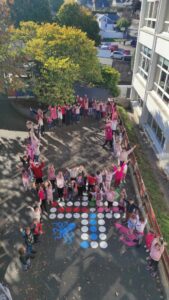 Cette année, nous avons décidé d’associer “Ma rentrée avec l’UGSEL” avec Octobre rose ! C’est donc tout naturellement que chacun est arrivé ce vendredi 17 octobre avec une touche de rose. Et dans l’après-midi, nous nous sommes tous réunis sur la cour de l’école pour vivre ensemble deux activités :